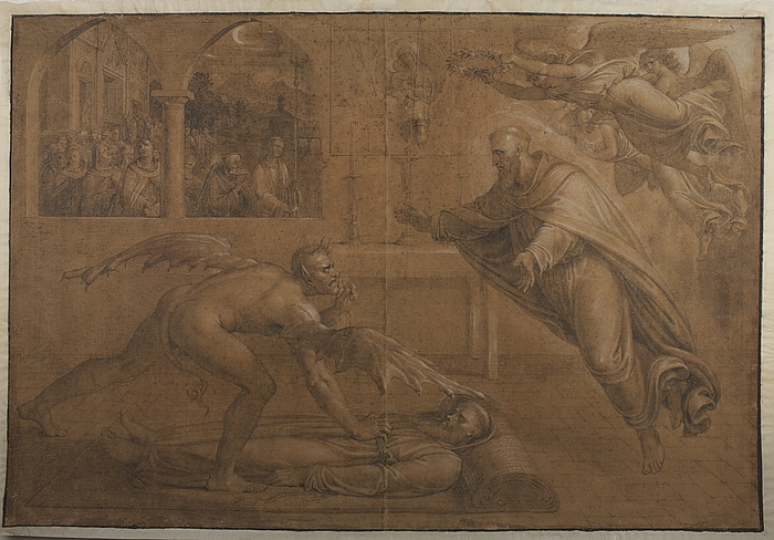 A depiction of Guido da Montefeltro entitled, “The struggle on the Dead Guido da Montefeltro” by Joseph Anton Koch. http://www.thorvaldsensmuseum.dk/en/collections/work/D687/zoom