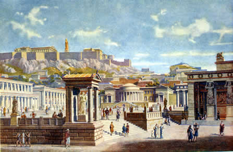 An artist’s rendition of the agora, the public sphere in Greek antiquity.http://2.bp.blogspot.com/-C35B-Cu49ng/Tnc5Qe0tmnI/AAAAAAAAM1I/tm5AbohPocs/s1600/10056152aAthensAgora+copy.jpg
