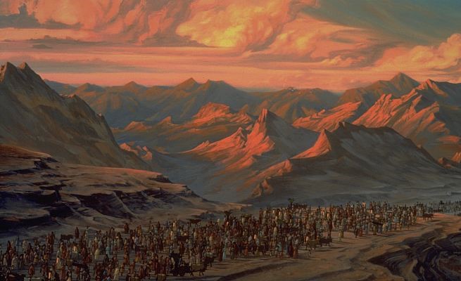 An artist’s rendering of the Israelite Exodus. While archaeologists assert that the biblical tale is mythological, it has nevertheless served as effective inspiration for social change. Here, the Israelites undertake an arduous journey to find the promised land of God.